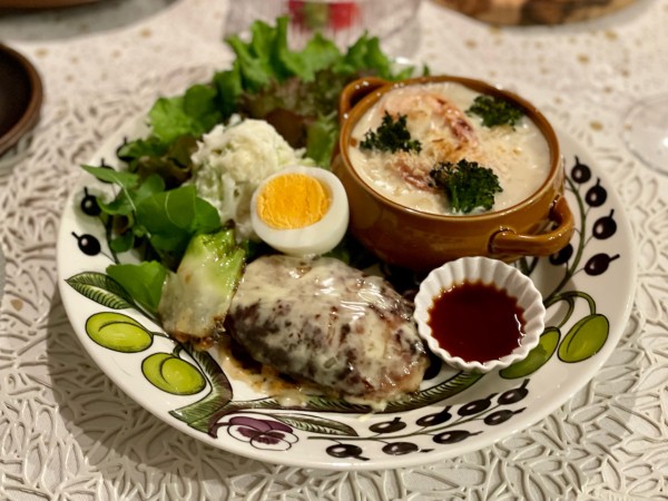 チーズハンバーグ&エビマカロニグラタンのウキウキワンプレートの夜ごはん&セリアで買った器が使える♪ : おうちごはんとおかしとねこ Poweredby ライブドアブログ。