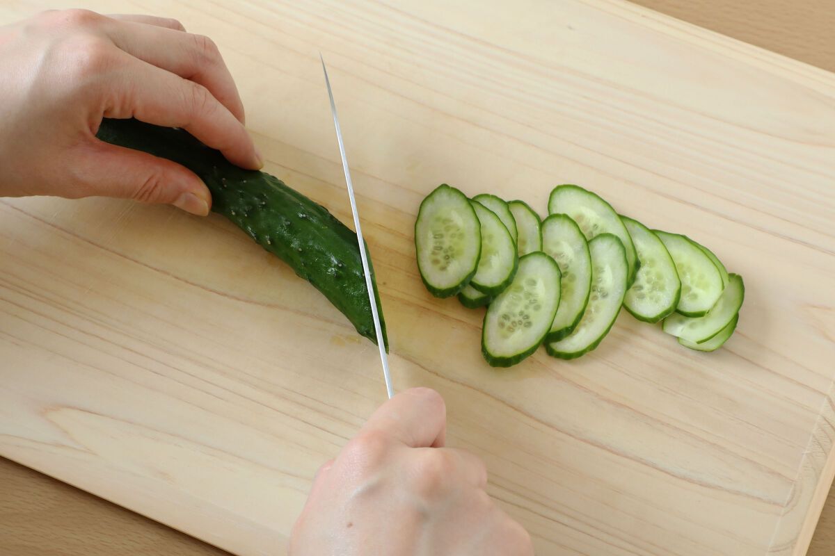 きゅうりの薄切り - 野菜の切り方 料理の基礎レシピサイトNadia。