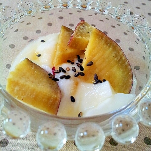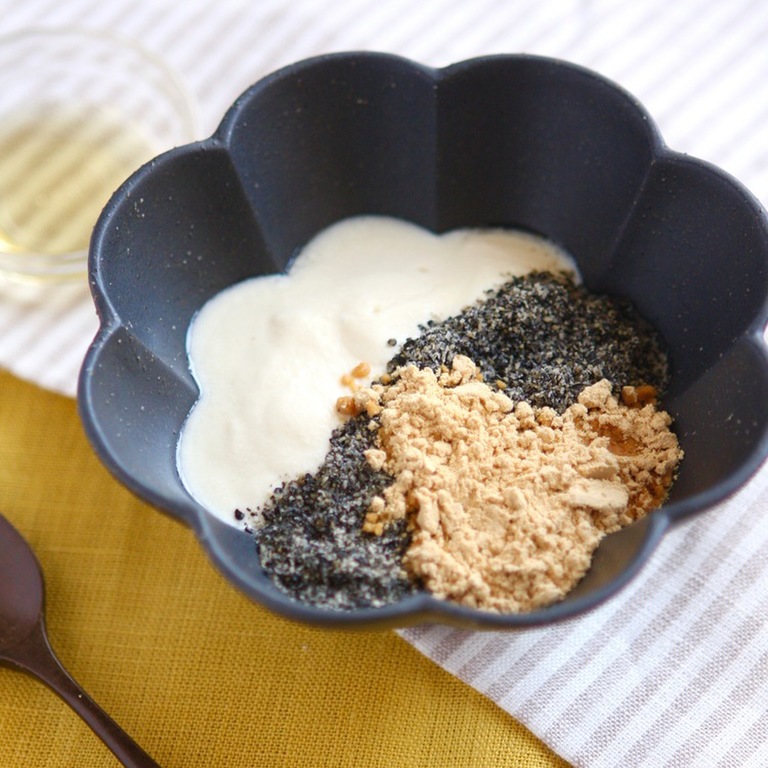 黒すりごまときな粉が香ばしい♪はちみつヨーグルト。