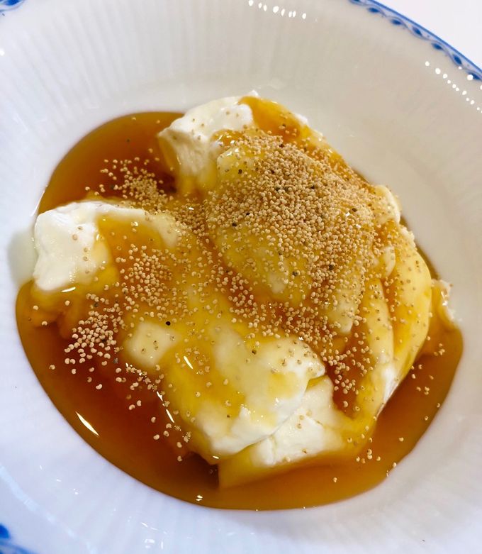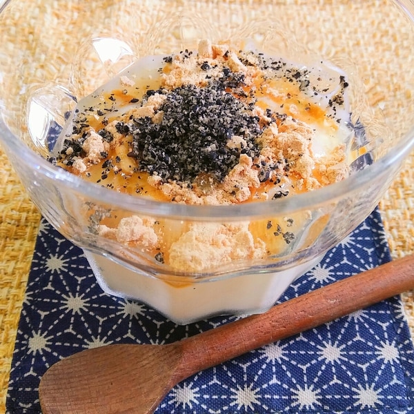 手作り豆乳ヨーグルトはちみつ・黒ごまきな粉入り。