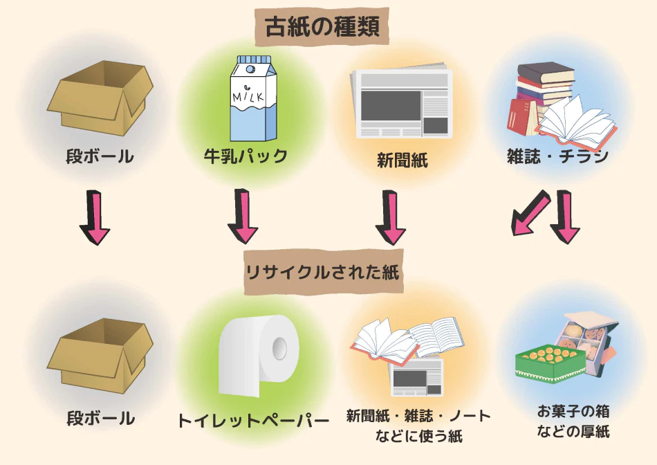 古紙のリサイクル - 宮崎市Miyazaki City。
