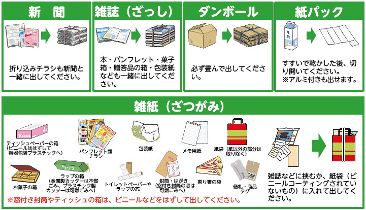 家庭におけるリサイクル可能な紙類の正しい出し方 家庭系紙ごみの出し方マニュアル 広島市公式ウェブサイト。
