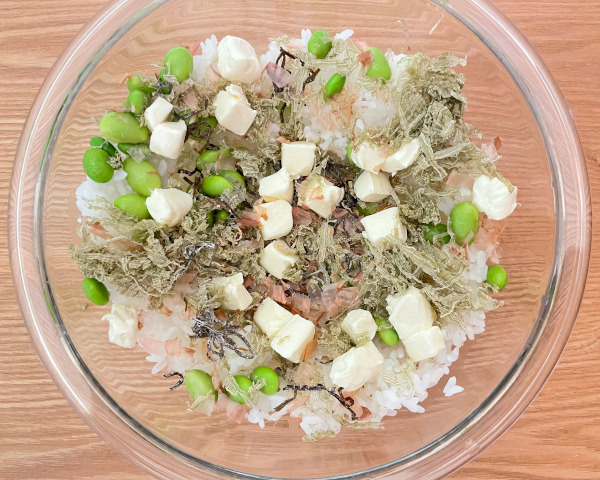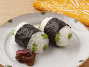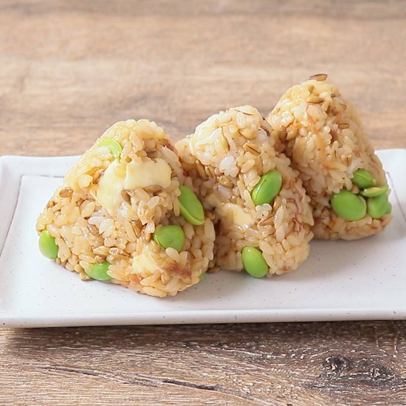 たんぱく質補給もできる 枝豆チーズ昆布おにぎり。
