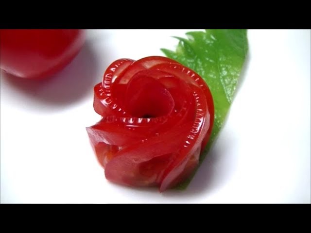 飾り切り トマトを薔薇に切る方法 包丁の切れ味を試してみよう -How to Decorative cutting tomato roze- -YouTube。