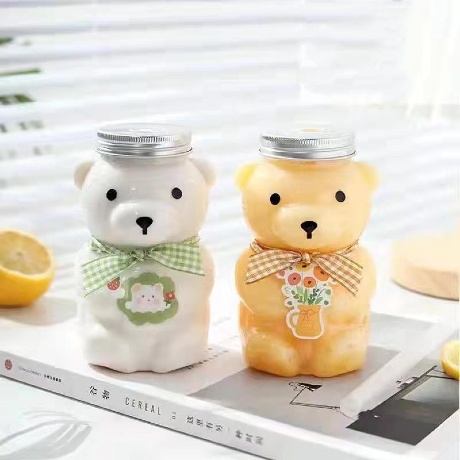 Amazon10個セット ドリンクボトル 350ml 500ml 小熊ミルクティーボトルpet使い捨て食品級 アルミ蓋付き 透明 プラコップかわいい 持ち帰り インスタ くまボトル バナナジュース カフェ おしゃれ ラテ テイクアウト ボトル ドリンク 映え ドリンク 容器。