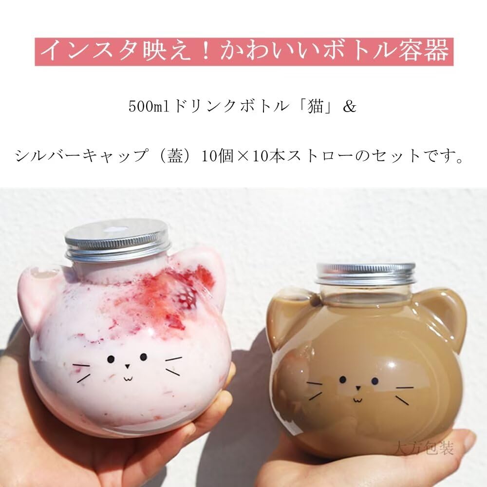 Amazon10個セット ドリンクボトル 500ml フタ付き プラコップ かわいい 持ち帰り インスタ 猫ボトル バナナジュース カフェ おしゃれラテ テイクアウト ボトル ドリンク 可愛い 透明 映え ドリンク 容器 フタの穴あり フタの穴なし水筒・マグボトル オンライン通販。
