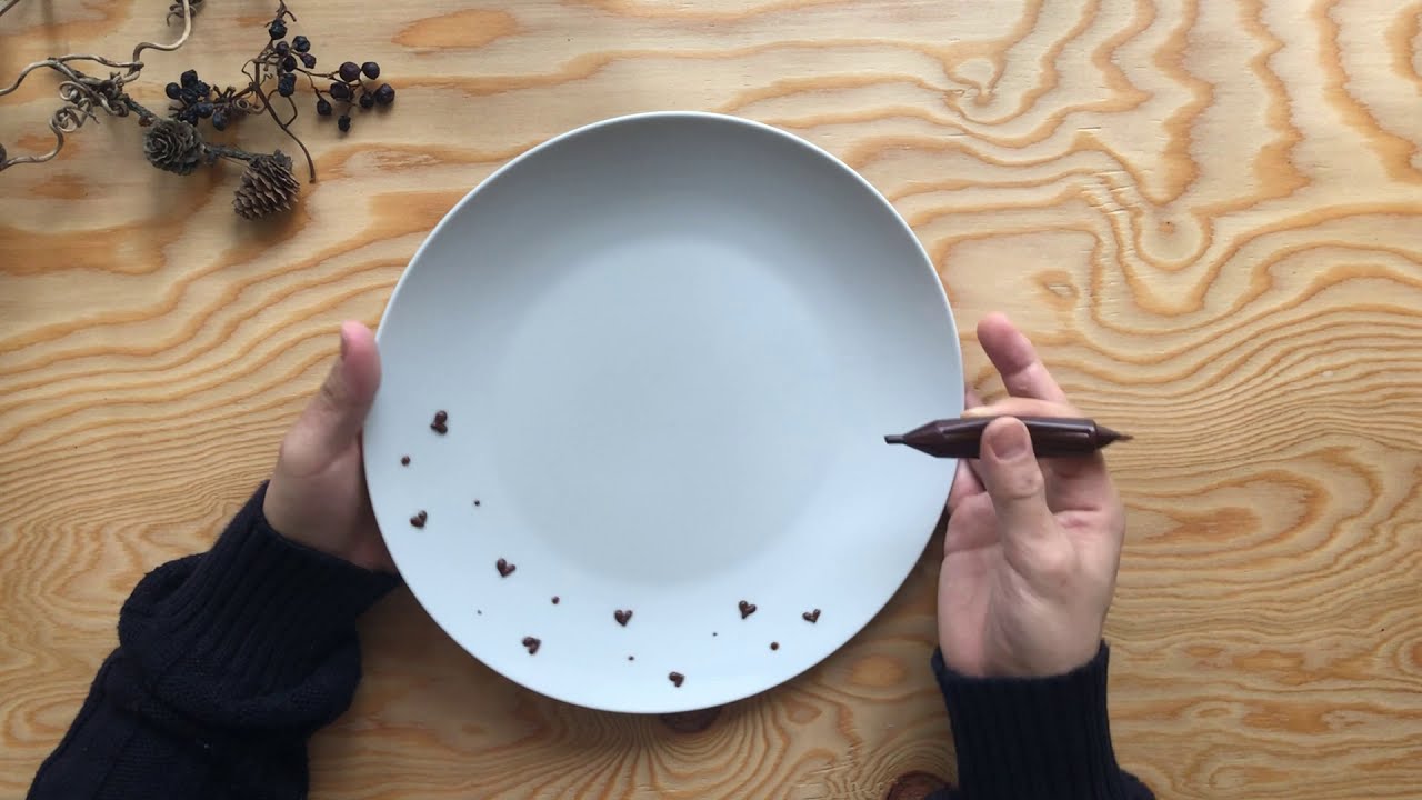 ハート型にチョコ 爪楊枝で模様 やり方TikTok。