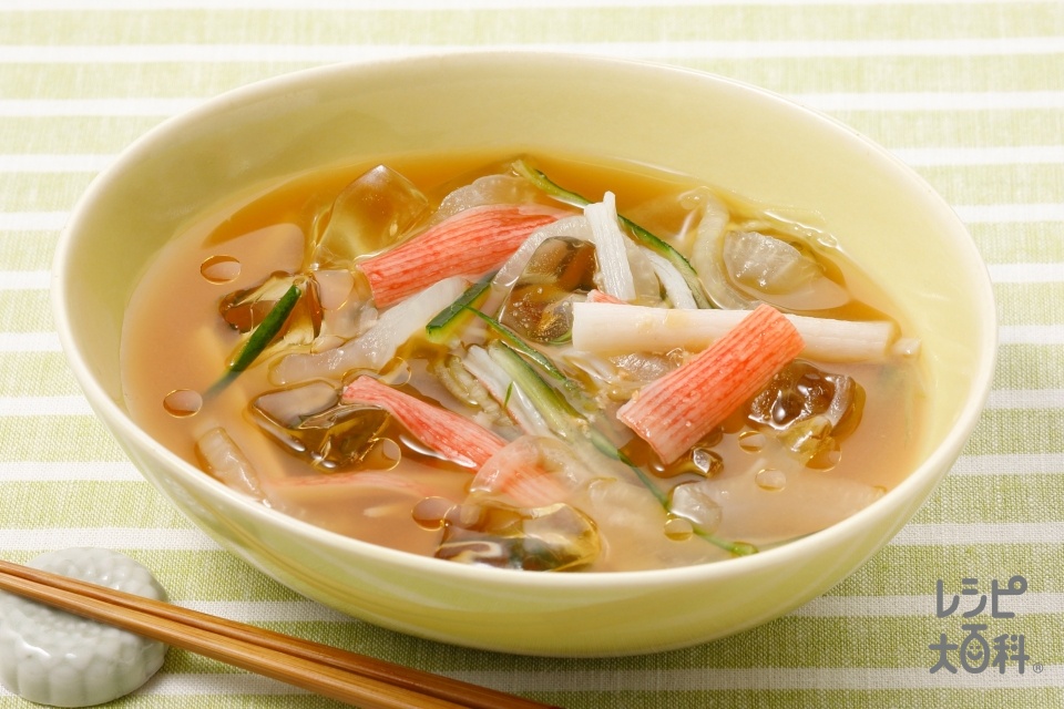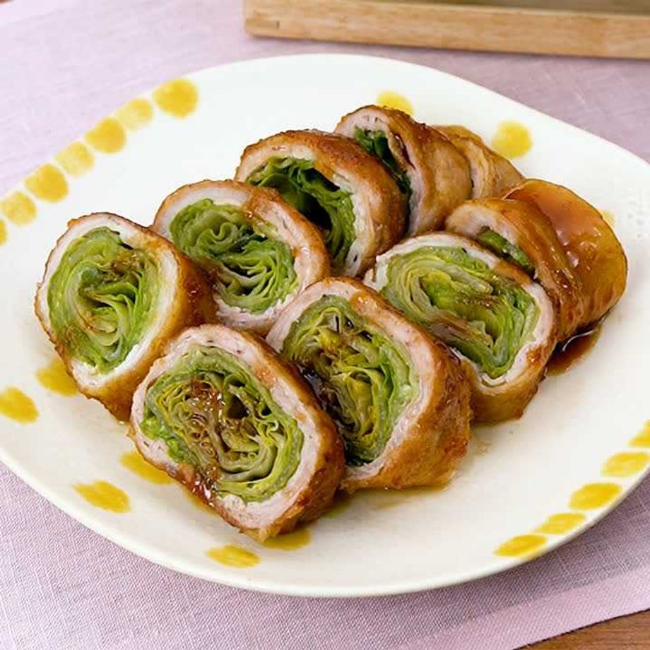 お餅の肉巻きの献立 副菜:「スチーミー」タレキャベツ、汁物:カニカマときゅうりの冷やしみそ汁 献立・メニュー 味の素パーク たべる楽しさを、もっと。
