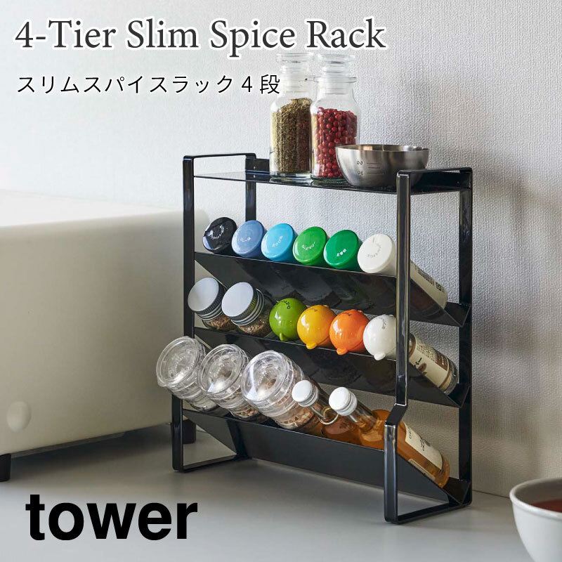 楽天市場 towerスリムスパイスラック タワー 4段スパイスラック 調味料ラック スリム 大容量 スパイス 調味料 収納 斜め 収納ラック収納棚 4段ラック キッチンラック コンロ周り 調味料収納 隙間収納 8144 8145 ホワイト ブラック YAMAZAKI タワーシリーズ 山崎。