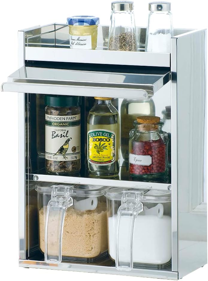 日本製 燕三条 隠せるステンレス調味料ラック 引き出し 大容量 スパイスラック ステンレス製 調味料入れ 調味料ポット 隠せる 隠す 収納 –Branchée Beauté。