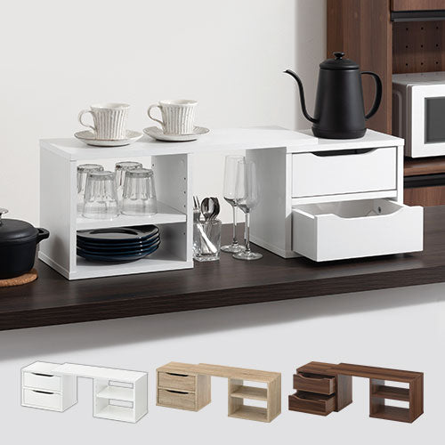 伸縮カウンター上ラック キッチンラック キッチン 収納 カウンター上 引き出し 調味料 ラック スリム 両面 調味料ラック 伸縮 木 木製キッチンカウンター おしゃれ 収納 対面 ぼん家具 KRA945063公式 インテリアのゲキカグ。