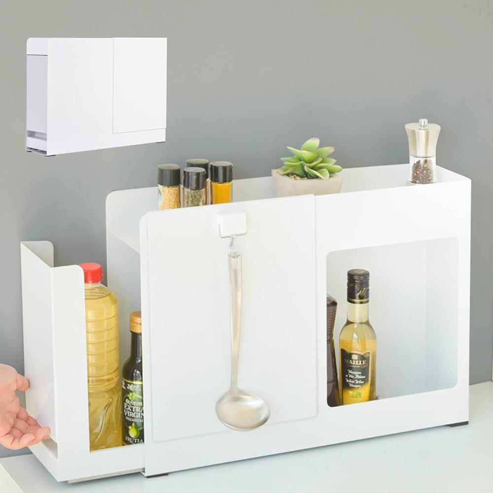 Amazon隠せる 調味料ラック スリム 引き出し コンロ横 スライド小窓付き キッチンラック キッチン収納 調味料入れ ストッカー 調味料ストッカーマグネット 隙間収納 収納ラック おしゃれ 省スペース キッチンサイド 調味料ホルダー左開き 調味料・スパイスラック。