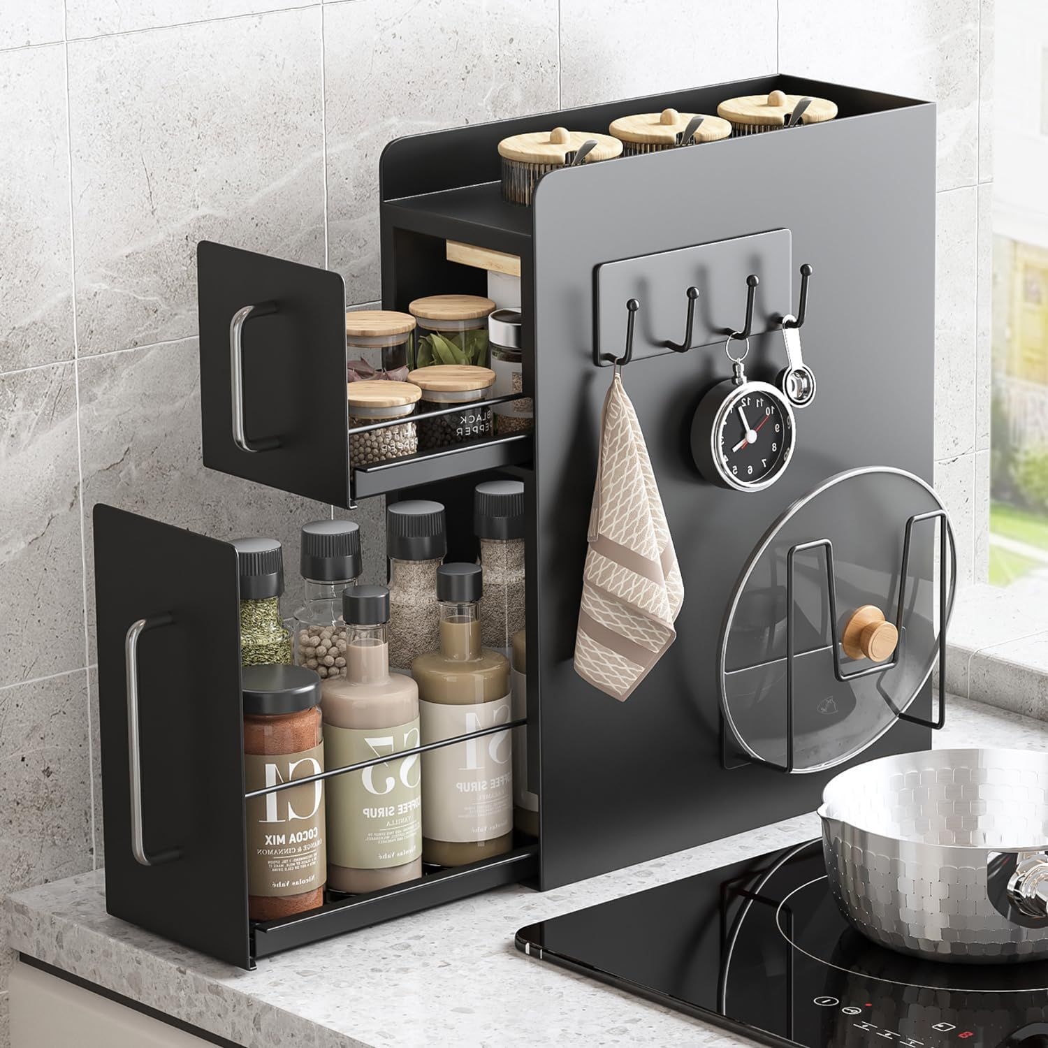 Goodraio隠せる調味料ラック2段引き出しスリムスパイスラック隙間収納大容量おしゃれスリムキッチン収納台所用マグネット鍋蓋ホルダーキッチンツールフック付け ブラック隠せる調味料楽天市場選べる2大特典 山崎実業 スパイスラック 隠せる調味料ラック タワー 2。