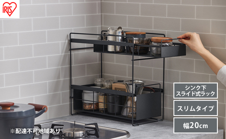 シンク下 収納 引き出し スライド ラック スリム SSR-200 ブラック アイリスオーヤマ 調味料 調味料ラック シンク下収納バスケット 隙間収納キッチン 台所 収納棚 2段 おしゃれ 省スペース宮城県大河原町ふるさと納税サイト「ふるなび」。