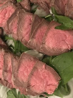 魚焼きグリルde牛のタタキ ローストビーフ。