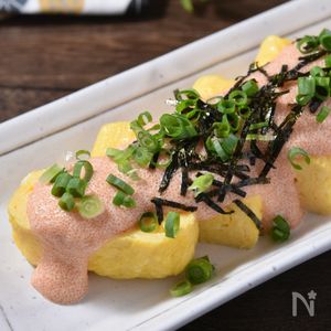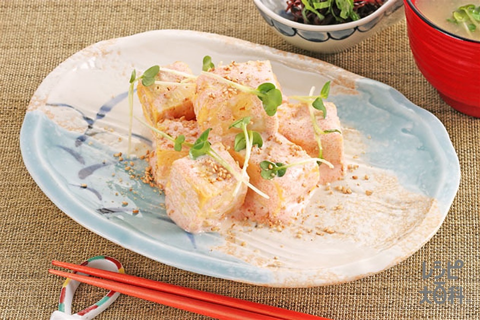 だし巻き卵の明太子マヨネーズ和え。