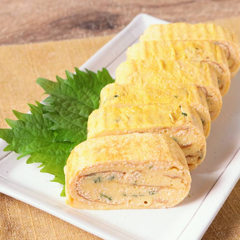 だし巻き卵 大葉と明太子のだし巻き卵 白だし 卵料理。