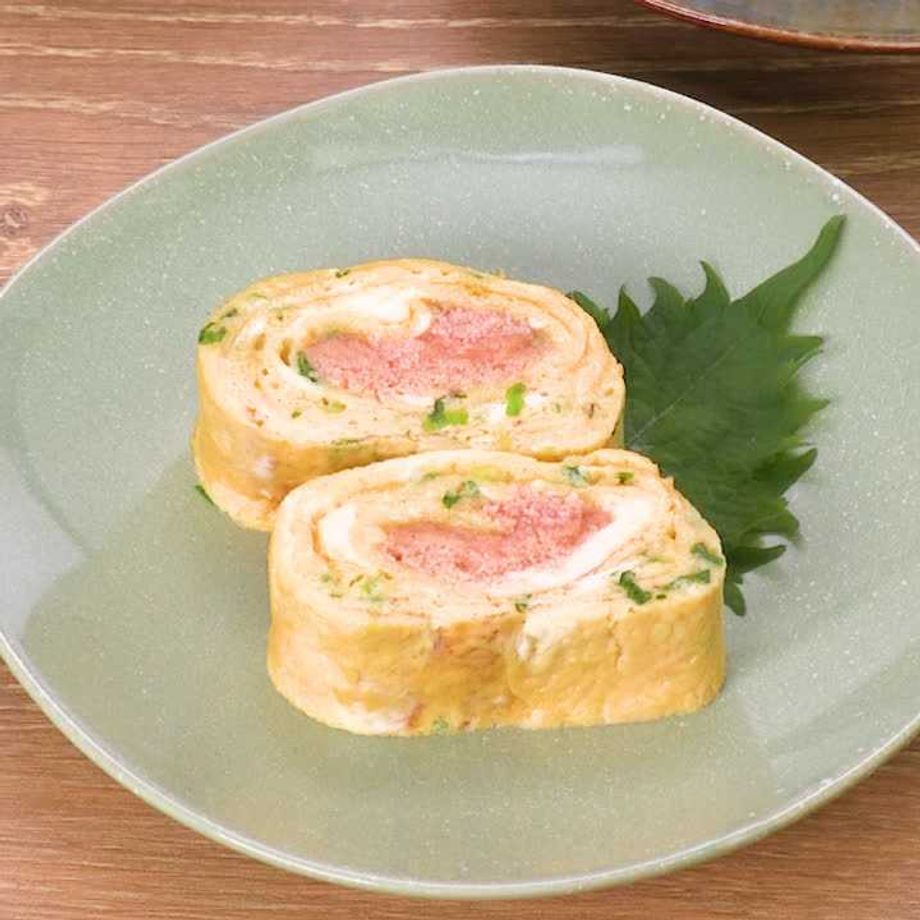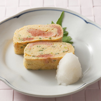 明太子と香味野菜のだし巻き卵。