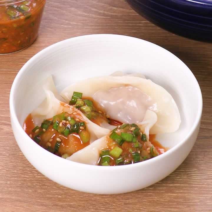 水餃子よだれ鶏のタレかけの簡単レシピ。