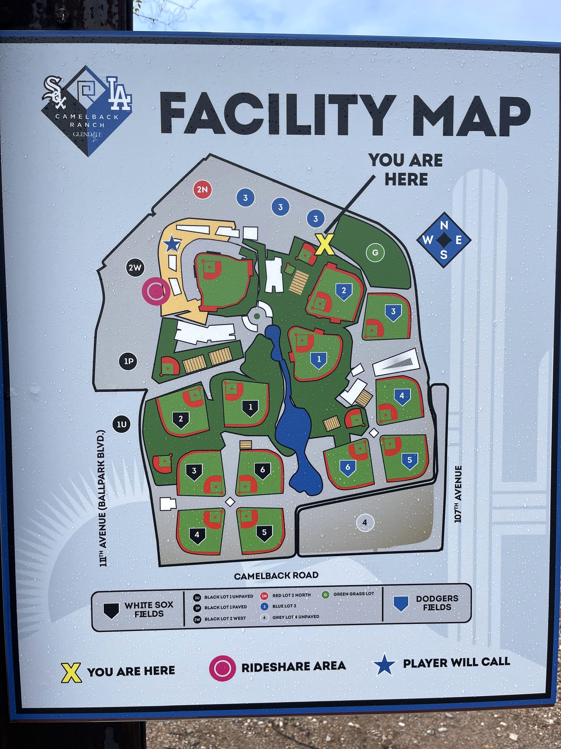 写真映像部 アリゾナ州グレーンデールのキャメルバックランチの地図。池を挟んで右がドジャースキャンプ地、左がホワイトソックスのキャンプ地になります 撮影・菅敏詳しくは日刊スポーツ、ニッカンコム www.nikkansports.com 、Facebook、Twitterで。dodgers。