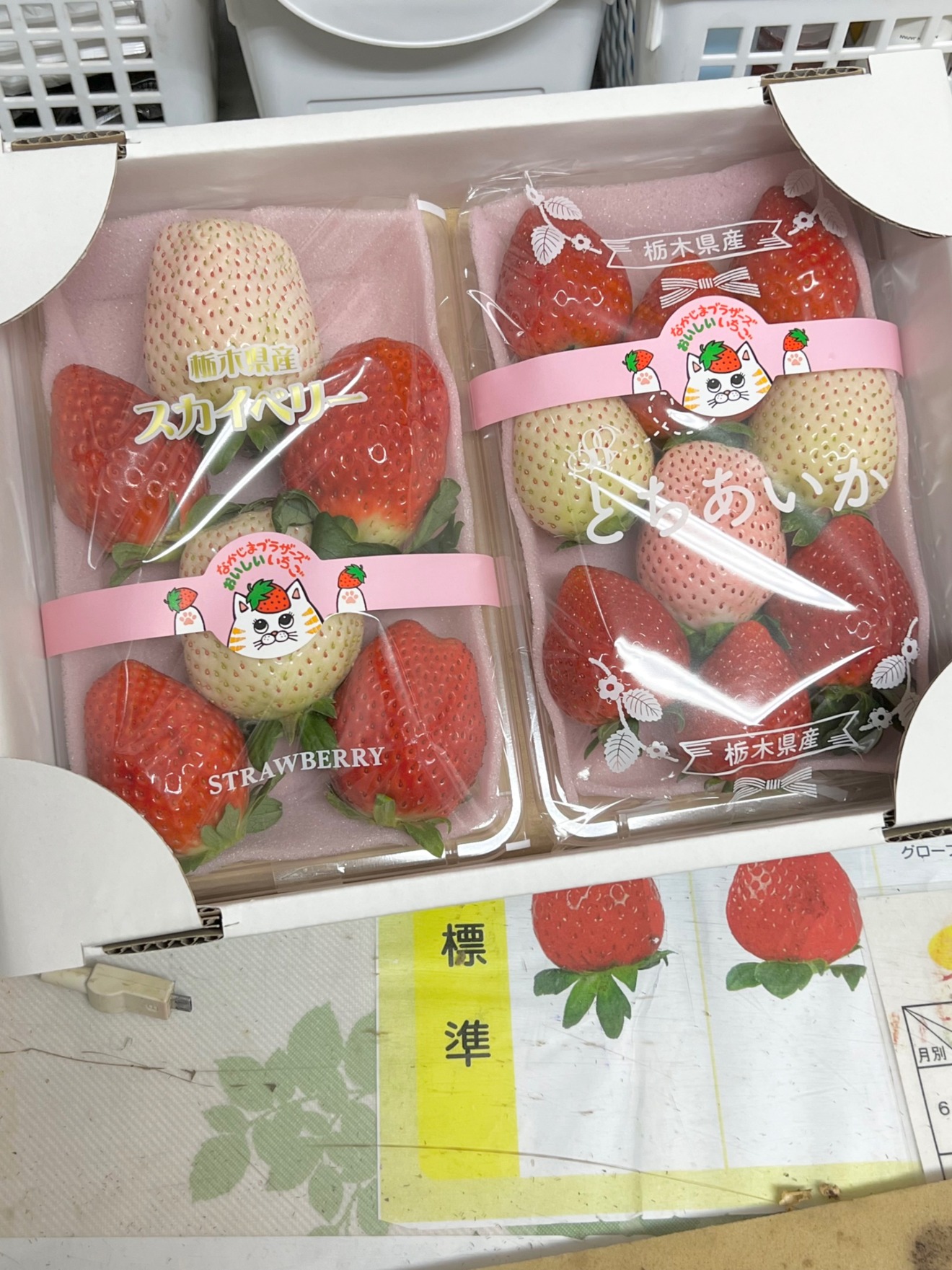 栃木のイチゴ食べ比べセットSPホワイトエディション お好きな品種2パックに白いちごが混ざります♪リベシティファーマーズマーケット。