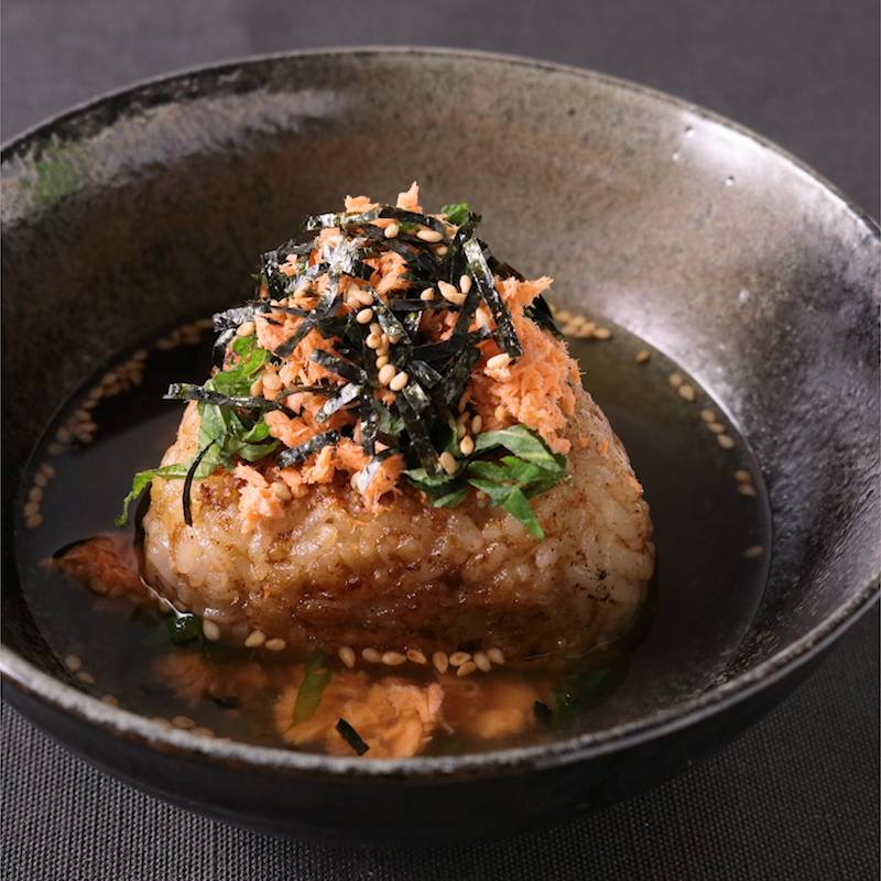 だしが決めて!焼きおにぎりの鮭茶漬け。