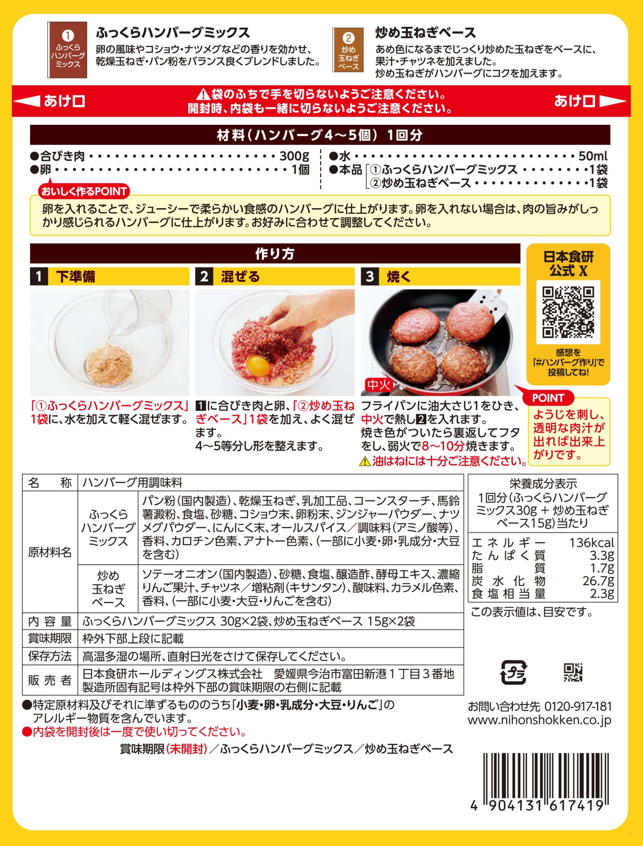 Amazon日本食研 夕食の主役になる ハンバーグ作り 90g×4袋日本食研ごはん・料理の素 通販。
