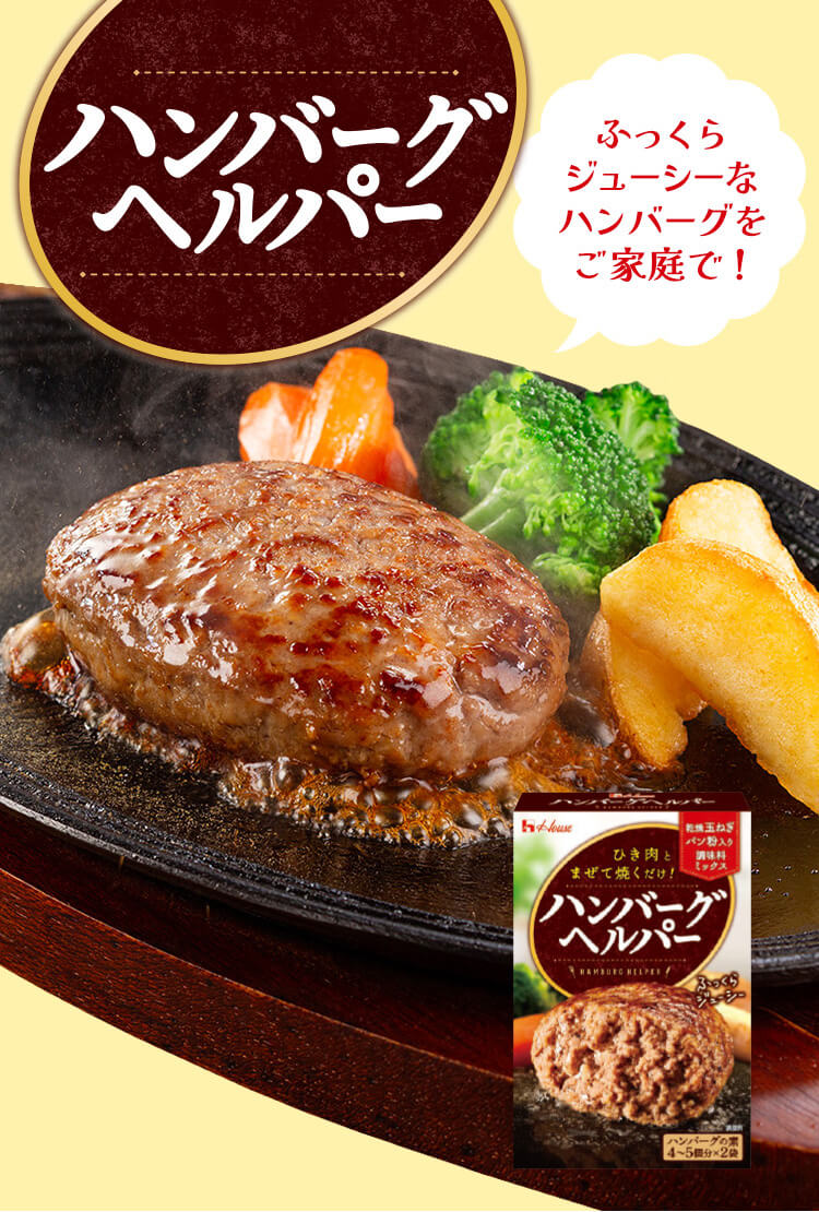 appiii88ハウス食品 ハンバーグヘルパー ひき肉とまぜるだけで簡単に作れて、これ1つで味付けが決まる! 乾燥玉ねぎとパン粉入りの調味料 ミックスだから、玉ねぎを刻んだり塩コショウの味付けも不要だからとっても楽☺️♫ 料理下手でも分量通りに作ればいいから、失敗。