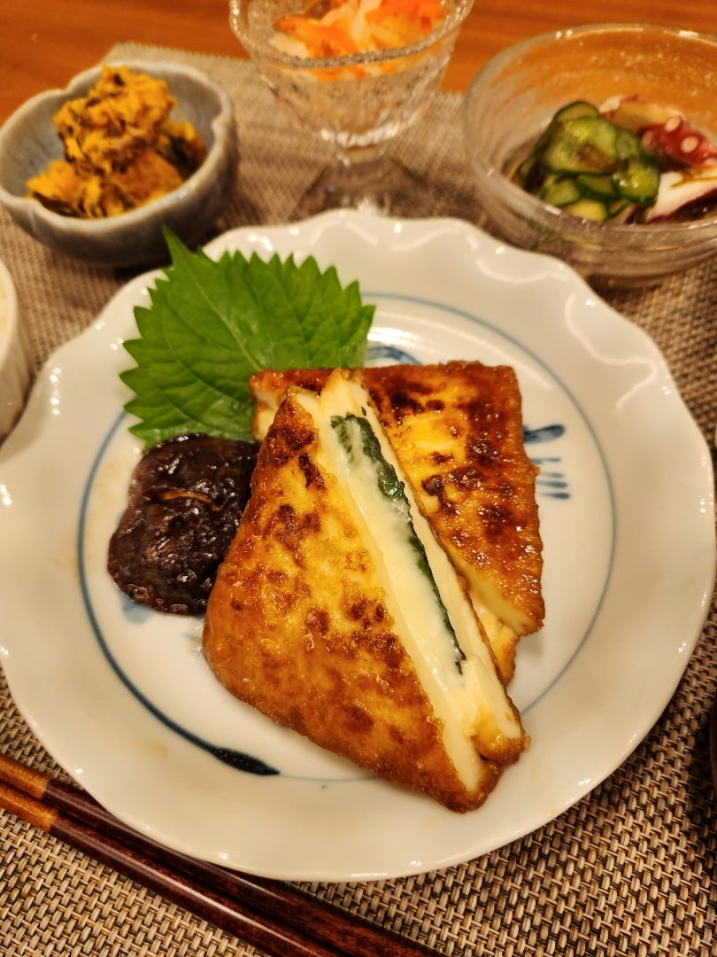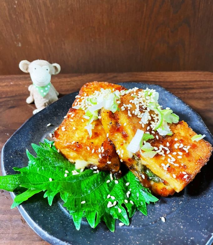 厚揚げ チーズ大葉挟み焼き 🐧ペンギン2Snapdish スナップディッシュID:e5jvja。