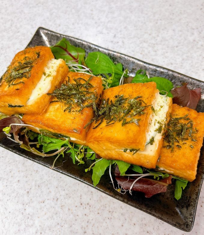 厚揚げのチーズはさみ焼き株式会社マリン・プロフーズ。