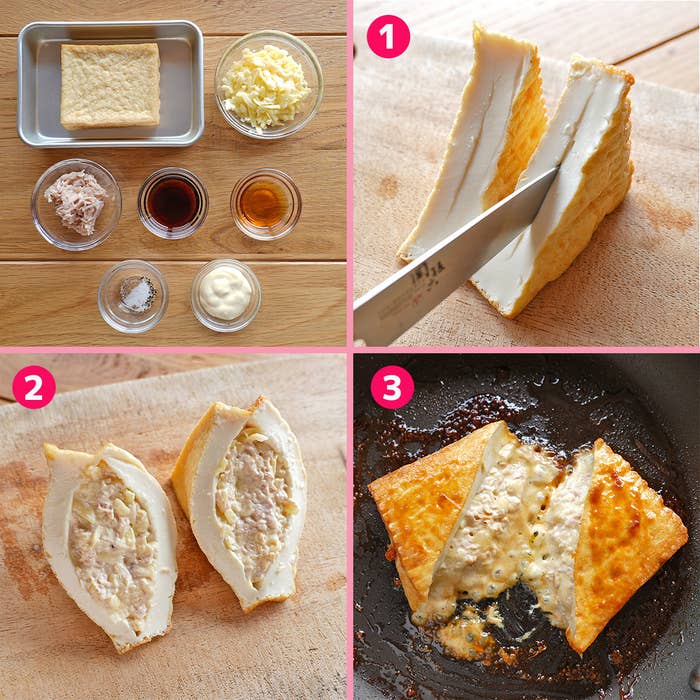 厚揚げで簡単おつまみ トースターで焼くだけ!厚揚げのチーズとベーコンの挟み焼きレシピ・作り方Tasty。