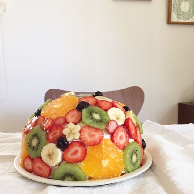 フルーツを切ってはるだけ!簡単デコレーション「水玉ケーキ」がポップでかわいいおうちごはん。