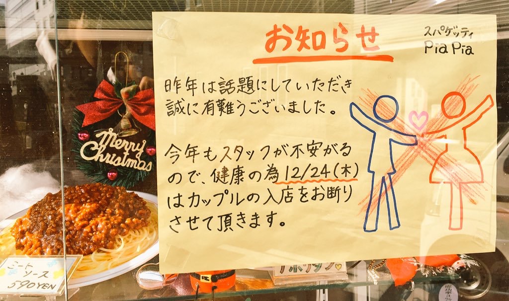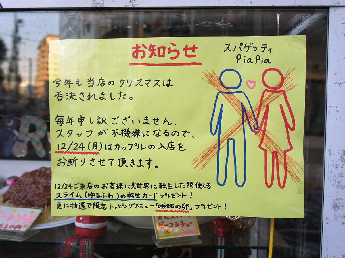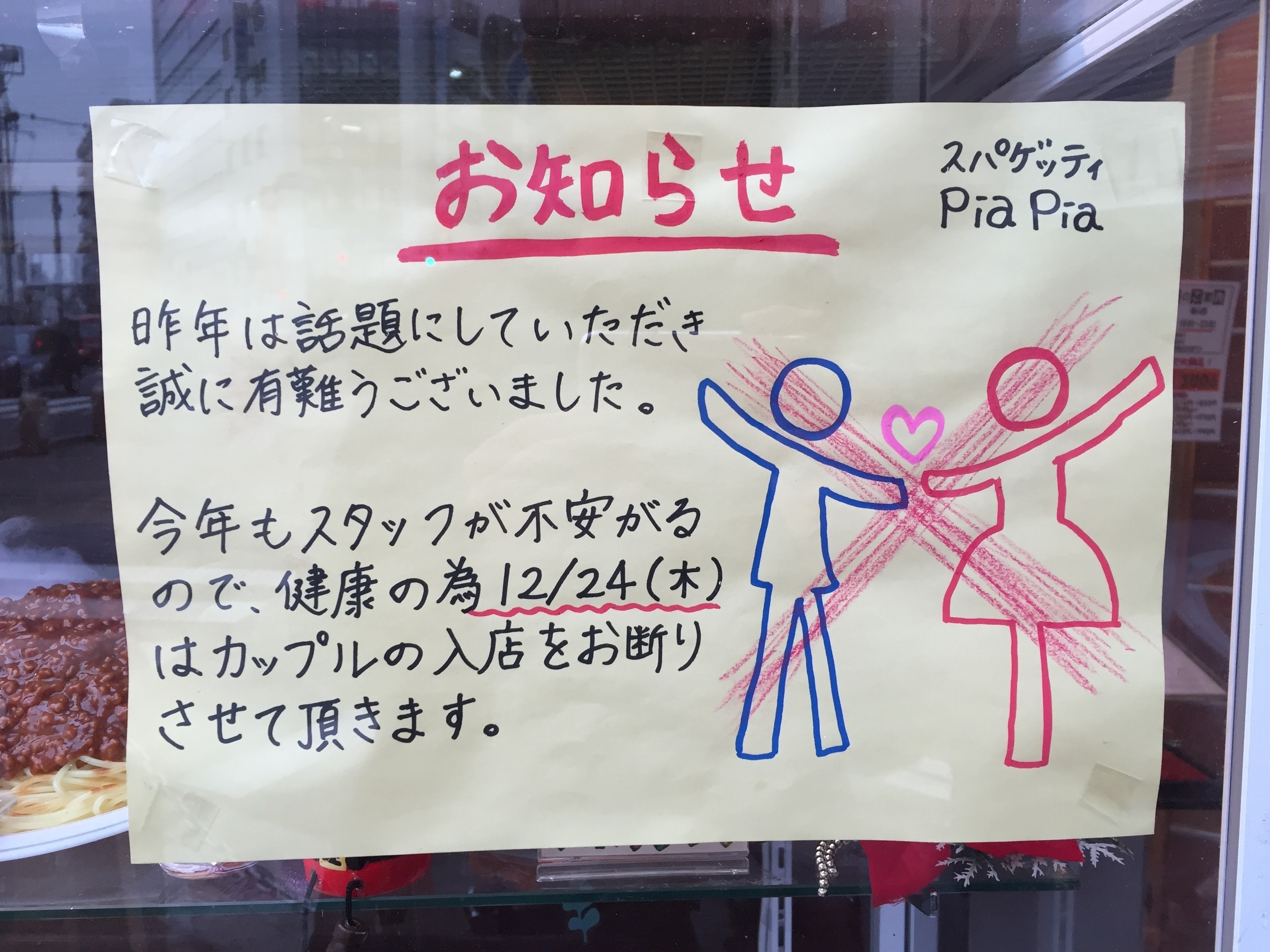 今年も「クリスマス否決」 「スパゲッティPiaPia」が5年連続、「イブはカップルお断り」 - 八王子経済新聞。
