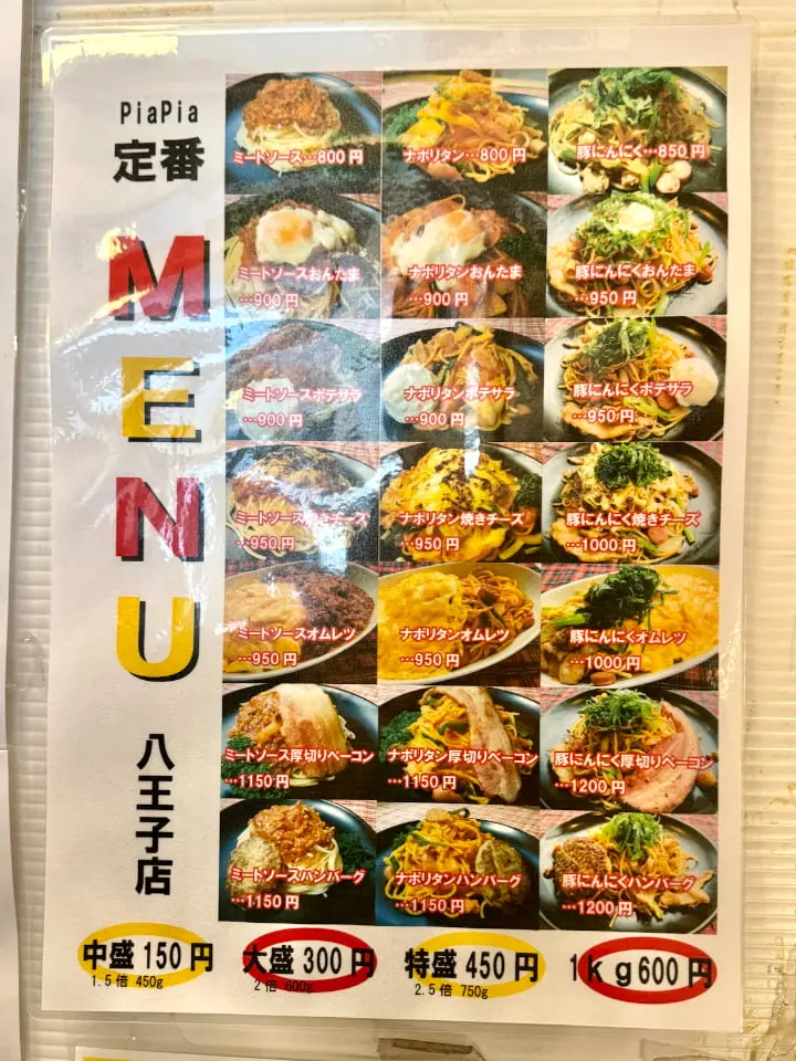 京王八王子駅前「スパゲッティPia Pia」で厚切りベーコンのナポリタンと豚にんにくを食べてみた – 多摩ポン。
