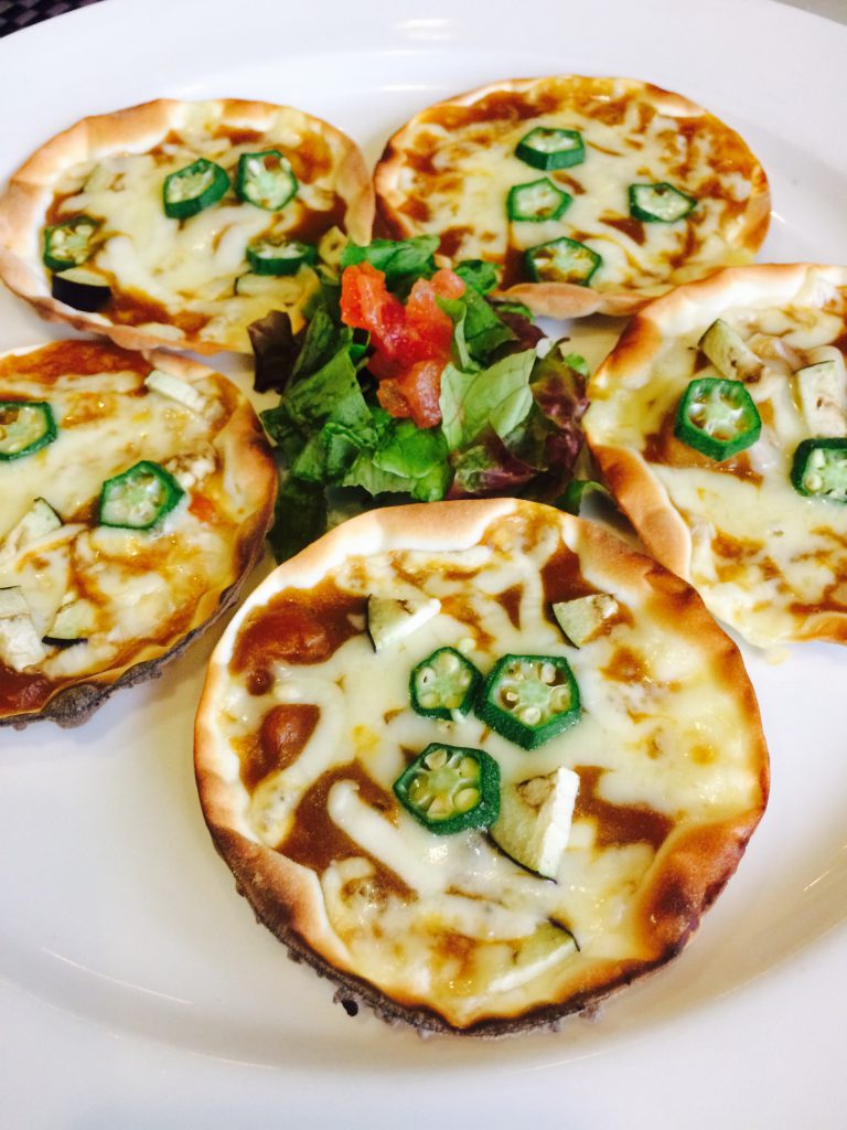 夏野菜とカレーのピザのレシピを更新しました。 - 米粉皮 餃子皮 春巻皮 井辻食産株式会社。