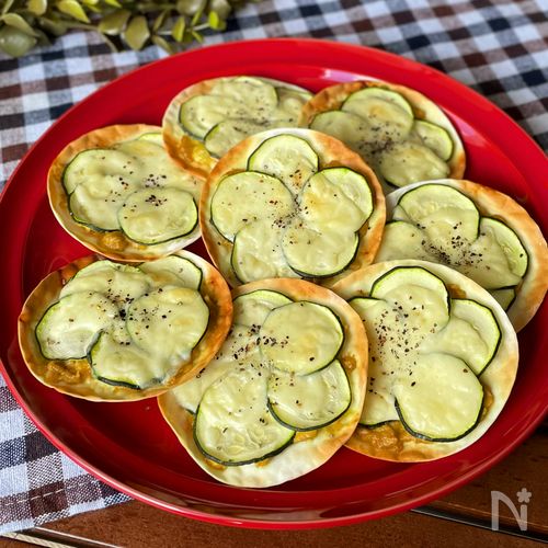 余った餃子の皮で夏のおつまみ!「ズッキーニのツナカレーピザ」。