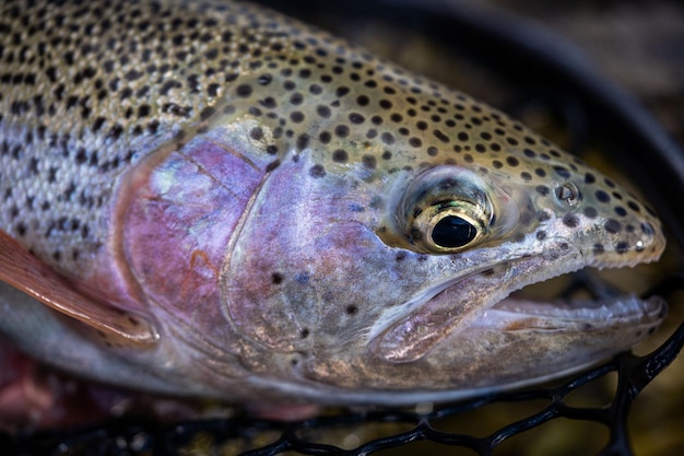 ネットに引っかかったラホンタン・カットスロート・トラウトのクローズアップPremium写真。