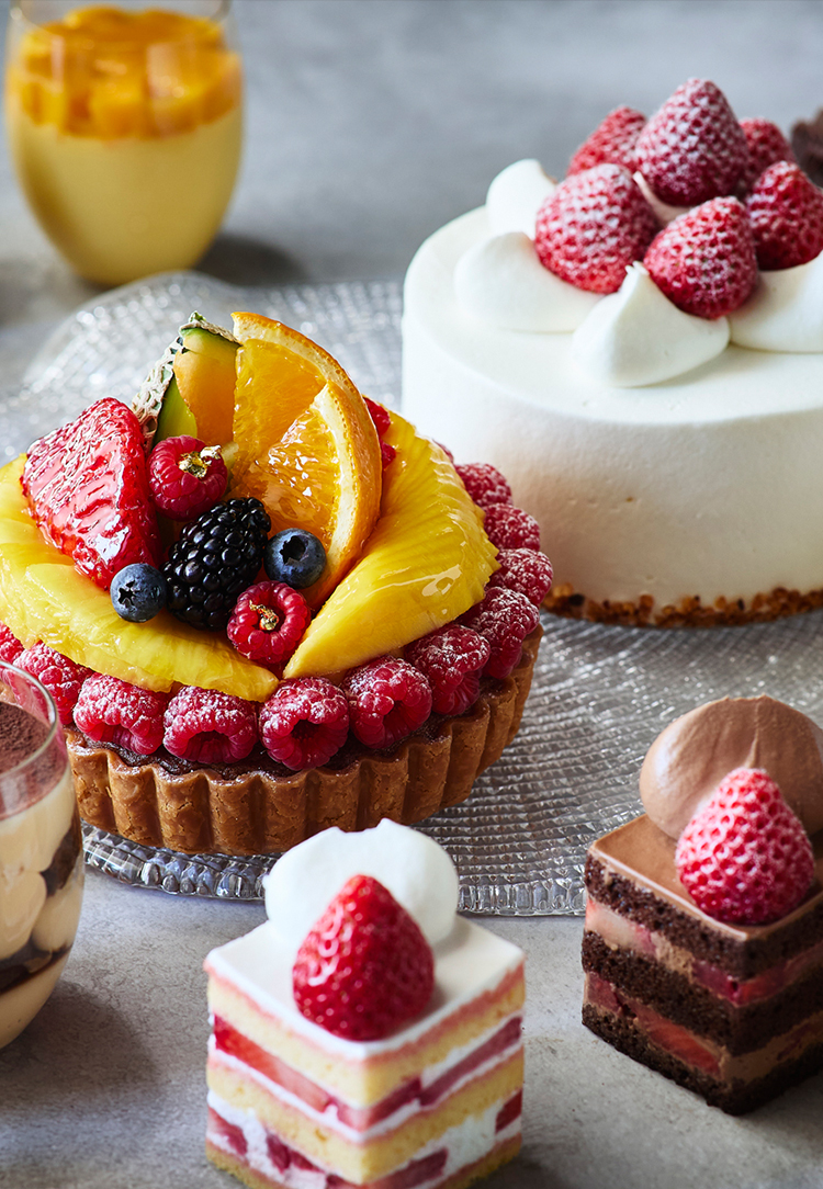 フィオレンティーナ ペストリーブティック」では、誕生日やお祝いごとに最適なペストリーチーム自慢のホールケーキを、オンラインでもご予約いただけます。しっとりしたスポンジ生地に自家製ベリーシロップをしみ込ませ、軽い口当たりの生クリームで包み込んだショート。