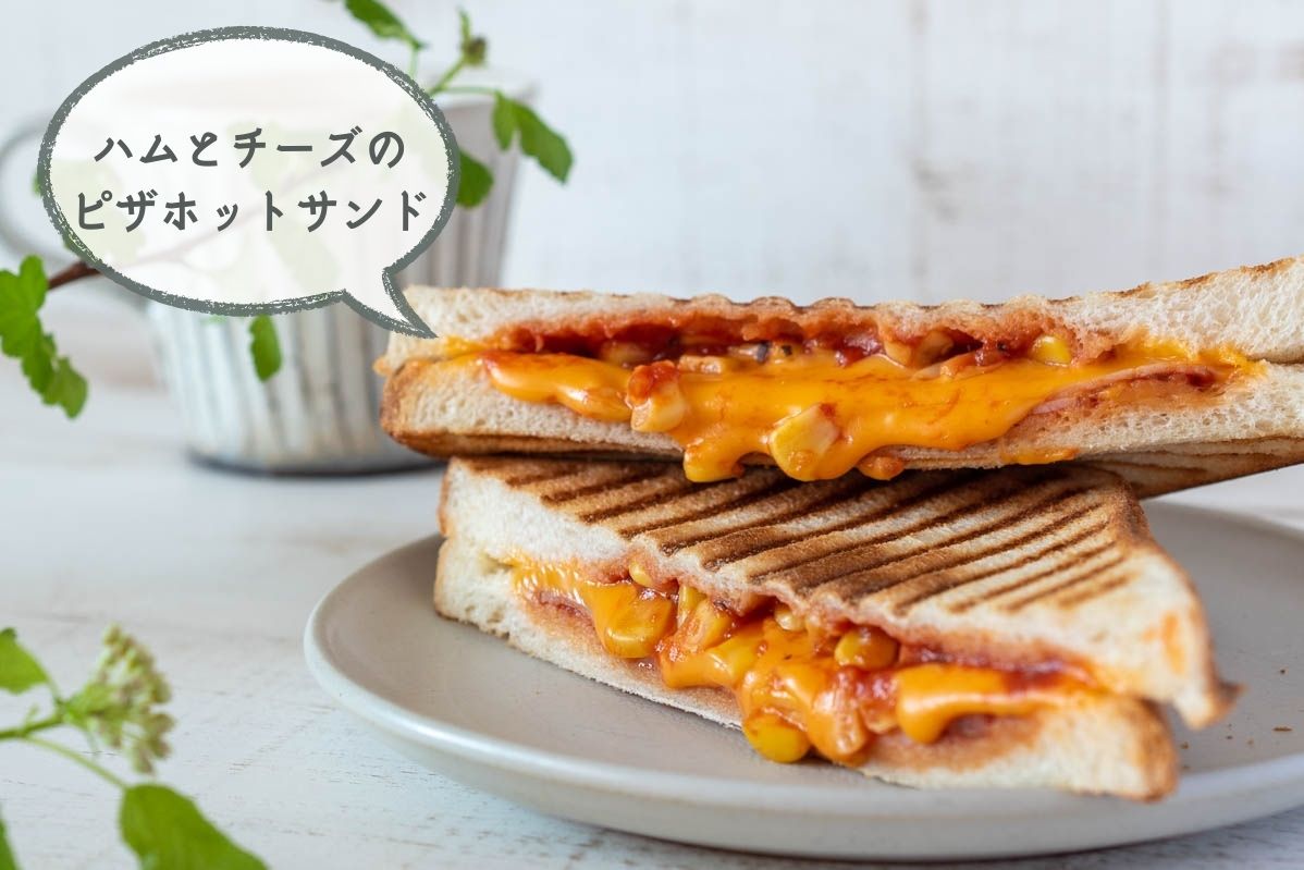 忙しい朝に!食パンにのせて焼くだけの簡単サンド♪『ハムとチーズのピザホットサンド』のレシピ・作り方 - ちょこっと学べるレシピサイト『なるほど食堂』。