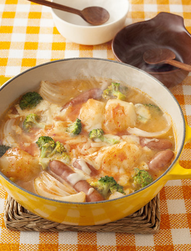 レシピ 子どもでも食べやすいチーズでマイルド!「豚肉キムチーズ鍋」。