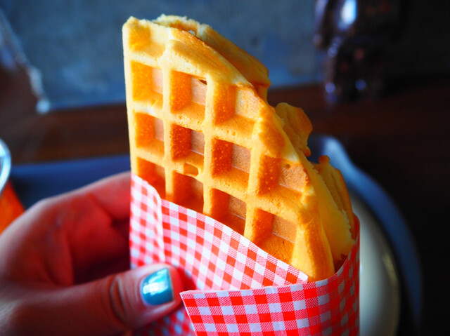 こんな食べ方初めて!片手で持って食べられるワッフル』by 横浜めぐ : スクープコーヒーscoop coffee - 新大久保 カフェ食べログ。