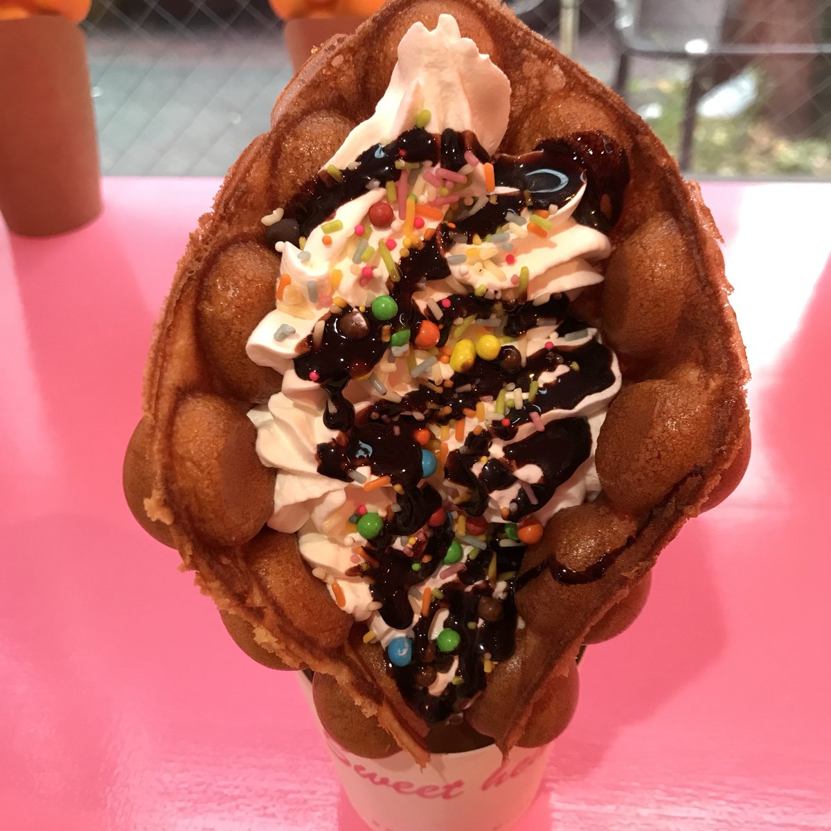 新大久保の新しい食べ歩きグルメ‼️サクサク韓国ワッフルのワッフルカーン😆❤️。
