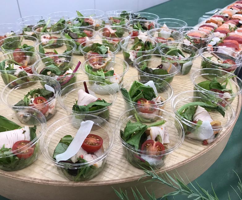 お料理の取り分けもスムーズに!立食パーティーにおすすめの料理事例をご紹介いたします!イベント・パーティー のことなら「おまかせケータリングdish ディッシュ 」。