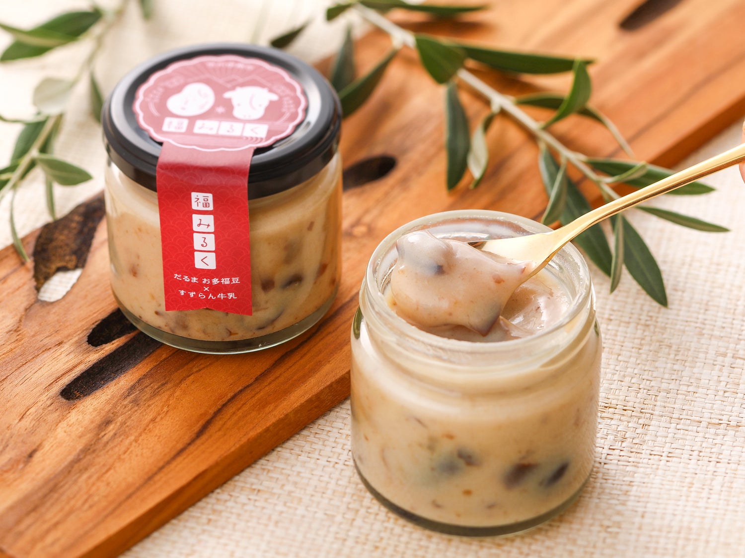 福よ届け!伊那「お多福豆」と駒ケ根「ミルクジャム」の至福のコラボ「福みるく」マクアケ - アタラシイものや体験の応援購入サービス。