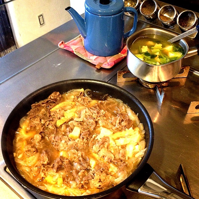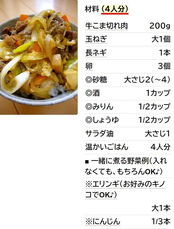 牛すき焼き丼、牛こま肉で簡単丼レシピ、パワー丼 - 魚料理と簡単レシピ。