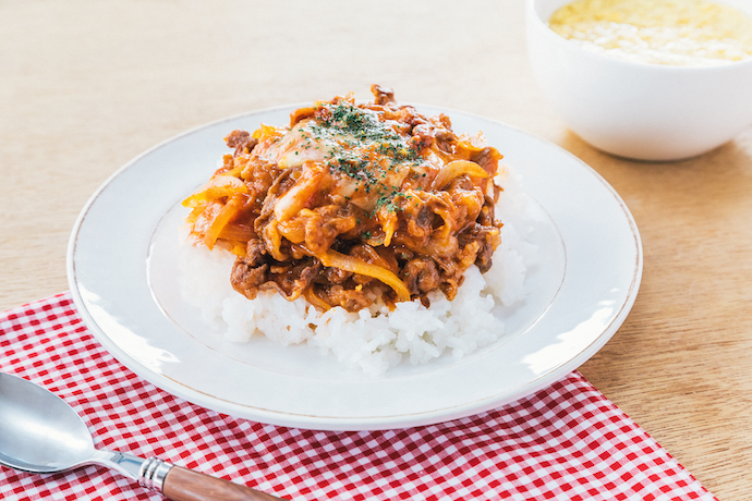 牛こま肉でつくる焼肉丼。