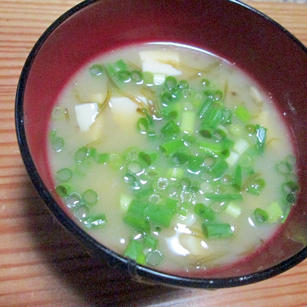 とろっとおいしい! とろろ昆布と豆腐のみそ汁。