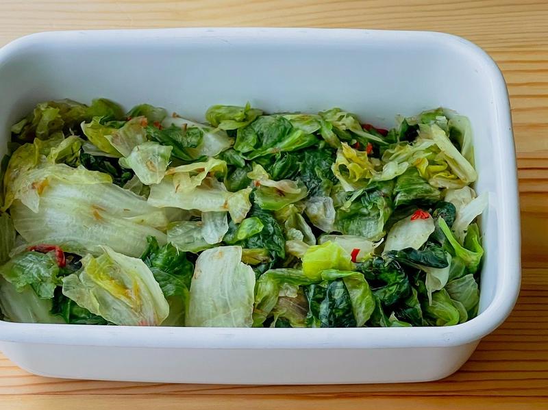 さっと茹でたらすぐ冷水へ。レタスを1玉使い切る常備菜。