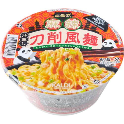 KALDI 山西式 汁無し麻辣刀削風麺カップラーメン道。