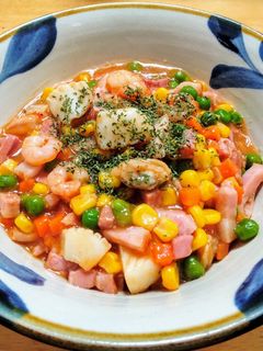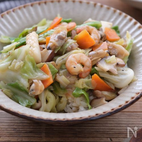 野菜室在庫一掃!シーフードミックスで簡単♡海鮮中華あんかけ丼Keep Smiling♪ 〜noripetit life〜 おうちごはんと日々の事。